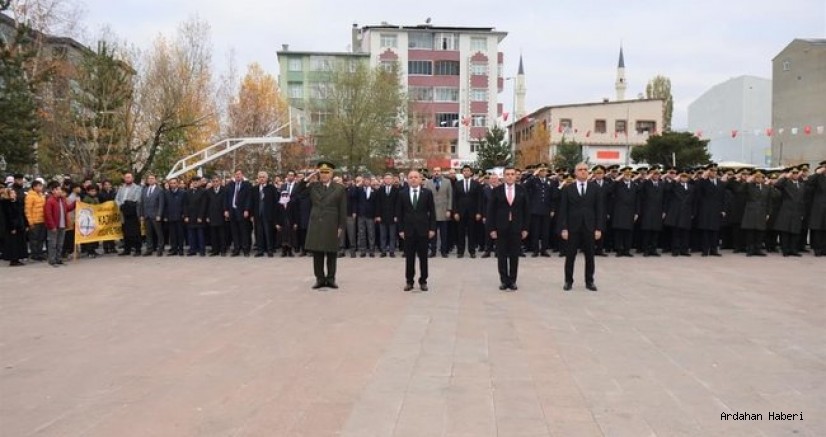 Gazi Mustafa Kemal Atatürk'ün ölüm yıldönümü nedeniyle düzenlenen törende Ardahan Valisi Hüseyin Öner, Garnizon Komutanı Vekili Albay Veli Altınay ve Belediye Başkanı Faruk Demir tarafından Valilik binası önünde ki Atatürk anıtına çelenk sunuldu.