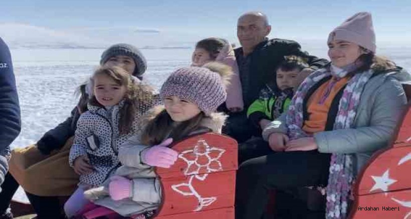 Asrın felaketi" olarak nitelenen Kahramanmaraş merkezli depremlerin ardından Ardahan'da misafir edilen depremzedeler için Çıldır Gölü'nde atlı kızak etkinliği düzenlendi.
