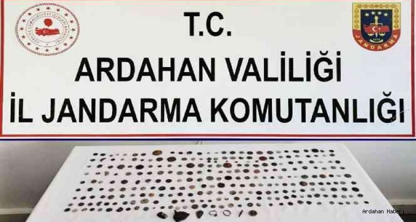 Ardahan'da jandarma ekiplerince durdurulan otobüste bir yolcunun çantasında yapılan aramada, 269 sikke ve 7 adet tarihi obje ele geçirildi.