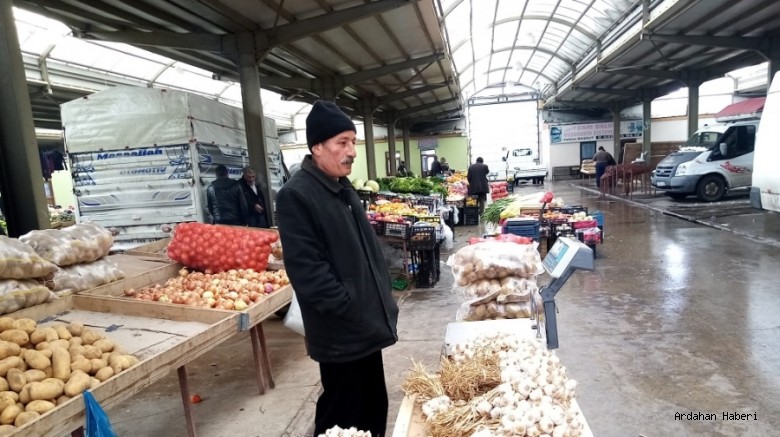 Ardahan’da soğuk hava nedeniyle olumsuz etkilenen pazar esnafı, yaklaşık bir aydır tezgah açmıyoruz işlerimiz havalardan dolayı düşük. Bu hafta tezgah açtık fazla müşteri gelmiyor. Bazı ürünlerde fiyetların yüksek olduğuna da değinen Pazar esnafı, ellerinde kalan malların zayi olduğuna dikkat çekti. Tezgâhta görünen bütün meyve ve sebze ürünlerinin yarısının don nedeniyle buzlandığını ve bu nedenle de çöpe gittiğini ifade eden pazarcı esnafı "hava şarlarından dolayı ne çalışabiliyoruz ne de satış yapabiliyoruz dedi.