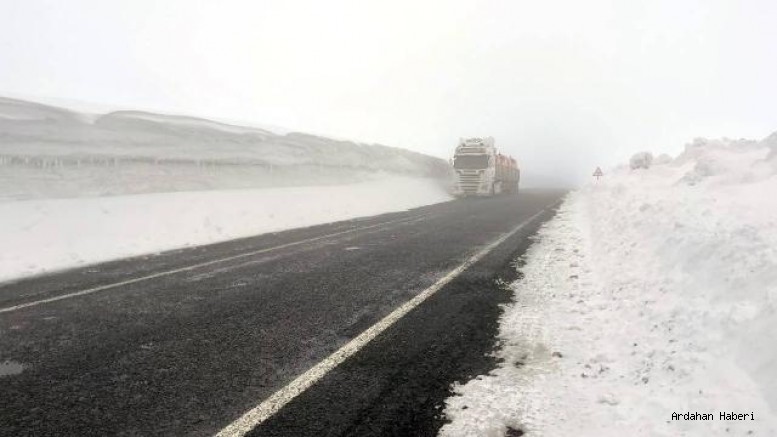 Ardahan'ın yüksek kesimlerinde etkili olan kar, tipi ve sis, sürücülere zor anlar yaşattı.