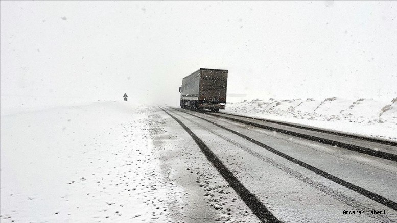 Ardahan-Şavşat kara yolunda, olumsuz hava koşulları nedeniyle ağır tonajlı araç geçişine izin verilmiyor.