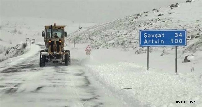 Kar ve yoğun tipinin ulaşımı aksattığı Ardahan-Şavşat kara yolunda karla mücadele çalışması başlatıldı.