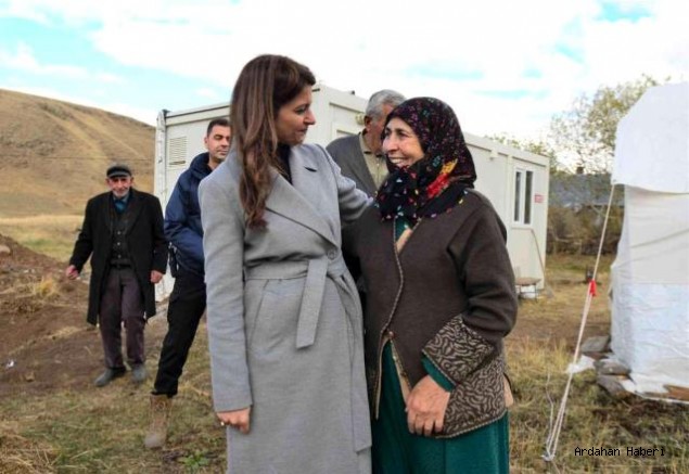 Ardahan Valisi Hüseyin Öner'in eşi Zehra Mine Öner, depremden etkilenen köylerde ziyaretlerde bulundu.