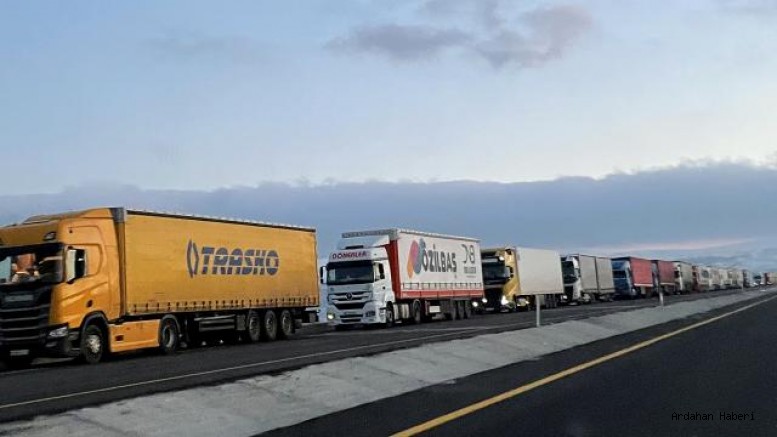 Ardahan'da, Gürcistan sınırındaki Çıldır-Aktaş Gümrük Kapısında meydana gelen trafik kazası sonrası 5 kilometreyi aşan tır kuyruğu oluştu