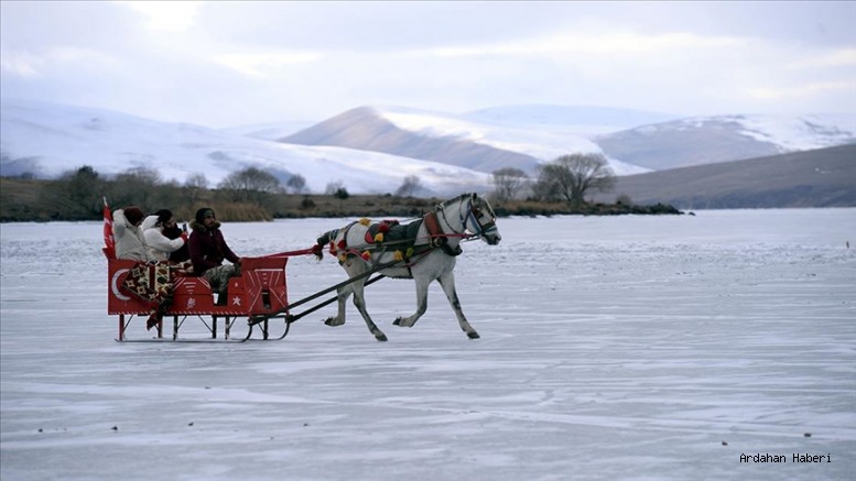 Ziyaretçilerden Gizem Arık ise Çıldır Gölü'nü çok beğendiklerini belirterek, "Herkese tavsiye ederiz. Buz üstünde gezdik ve atlı kızağa bindik. Çok güzel bir duygu." ifadelerini kullandı.