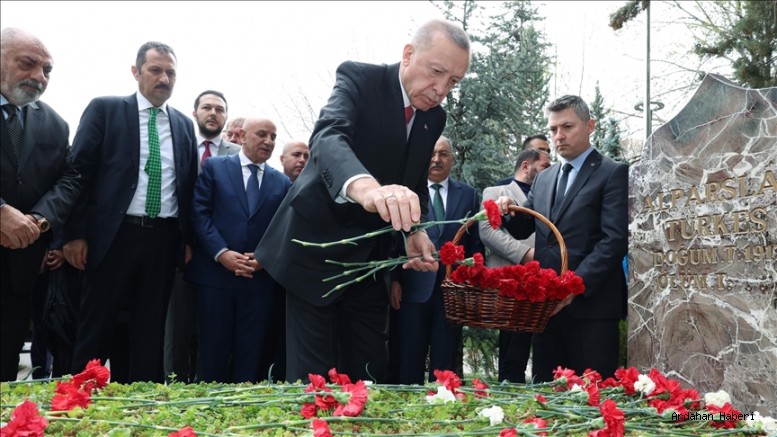 Duaların ardından Cumhurbaşkanı Erdoğan, Türkeş'in kabrine kırmızı beyaz karanfiller bıraktı.