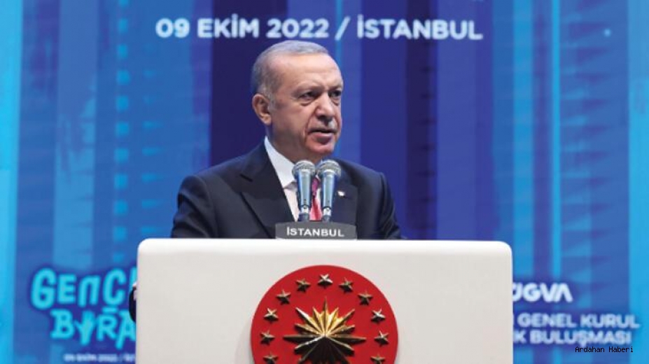 Burada gençlere seslenen Cumhurbaşkanı Erdoğan, "Türkiye’nin en kıymetli hazinesi olan gençlerinin bir kısmını küresel güç baronlarının emperyalist hezeyanlarına kurban verdiğimiz dönemlerin acıları hala yüreklerimizde tazedir. TÜGVA bu ülkenin dostlarının, gençlerinin, milletimizin ve onunla birlikte tüm insanlığın hayrına çalışmalar yürütecek bilince ve birikime sahip kılmak için verdiğimiz mücadelenin en önemli kurumsal markalarından biri haline gelmiştir. Bu çatı altında yürütülen mücadeleden rahatsız olanların yalan ve iftira çıtasını sürekli yükseltmesinin gerisinde, işte bu hakikat vardır. Bu ülkenin gençlerini PKK gibi, FETÖ gibi DEAŞ gibi terör örgütleri fikri ve cinsi sapkınlık akımları üzerinden heba edemediklerini görenler elbette TÜGVA’ya saldırmaya devam edeceklerdir. Neymiş, Gençlik olarak çok güçlüymüşler. Ne alaka? İşte gençlik burada. Sizler, ilimden sanata, spordan teknolojiye kadar her alanda ne aradığınızı bildiğiniz için değerlisiniz" diye konuştu.