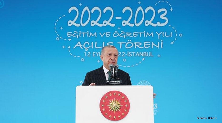 Cumhurbaşkanı Erdoğan, konuşmasına 2022-2023 eğitim öğretim yılının hayırlı olmasını dileyerek başladı. Okulun adını taşıdığı Bayrak şairi Arif Nihat Asya’yı da andı.