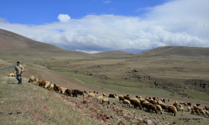 Hayvancılığın önemli merkezlerinden olan Ardahan’da, yüzlerce koyun sürüsü meralara çıkarılırken, zorlu geçen kış şartlarının ardından çobanların da meradaki mesaisi başladı.