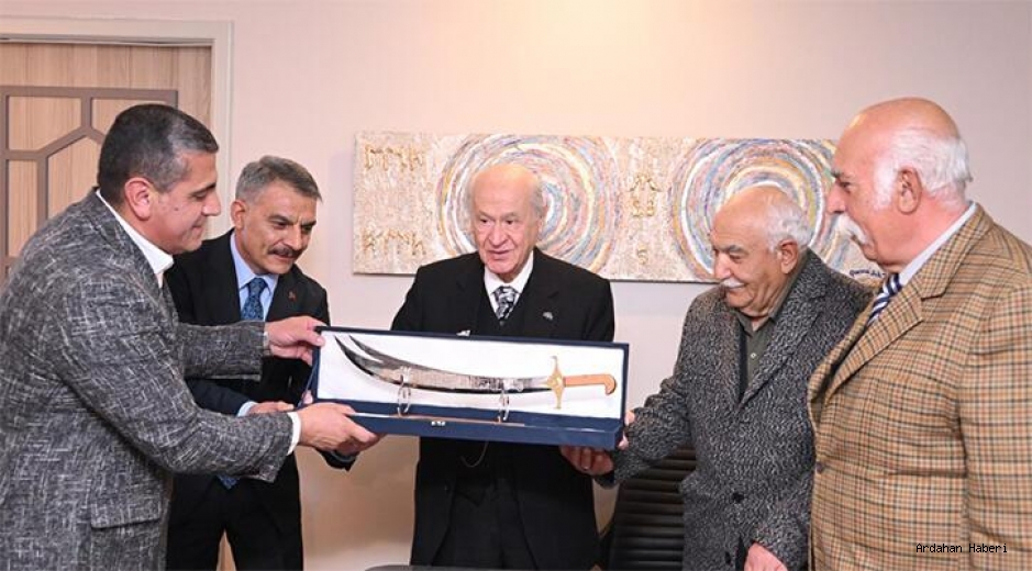 Görüşmede Bahçeli’ye ‘Zülfikar’ kılıç hediye edildi. Buluşmayı MHP’nin Hukuk ve Seç İşlerinden Sorumlu Genel Başkan Yardımcısı, İstanbul Milletvekili Feti Yıldız, sosyal medya hesabından duyurdu.