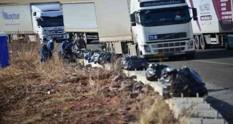 Çıldır Aktaş Sınır Kapısı karayolunda TIR yoğunluğu nedeniyle yaşanan çevre kirliliğinin ortadan kaldırılması amacıyla, Vali Hüseyin Öner'in talimatıyla temizlik çalışması başlatıldı.