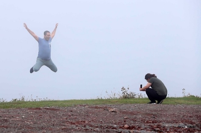 Ardahan’ıArtvin’e bağlayan Sahara geçidinde oluşan yoğun siste hatıra fotoğrafı çektirdiler.