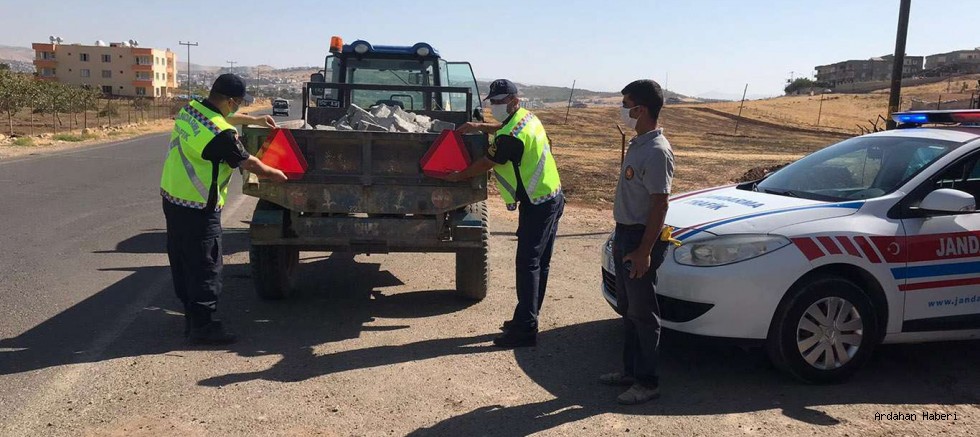 Polis ekipleri, uygulama noktalarında ve karayolunda durdurulan traktörlerden römorklarında reflektörü olmayan ya da yetersiz olanlara reflektör taktı.