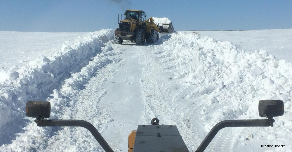 Ardahan İl Özel İdaresi ekipleri, aşılama çalışması yapan veterinerlerin yolu kar nedeniyle kapalı olan köylere ulaşımını sağladı.
