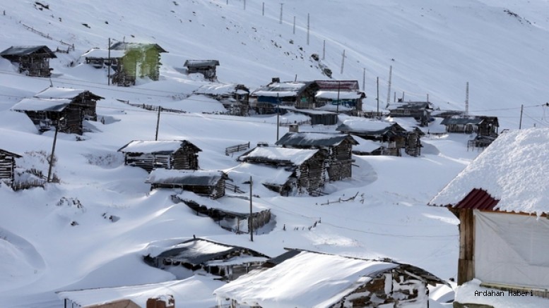 Ardahan'ın yüksek kesimlerinde bulunan yayla evleri karla kaplandı.