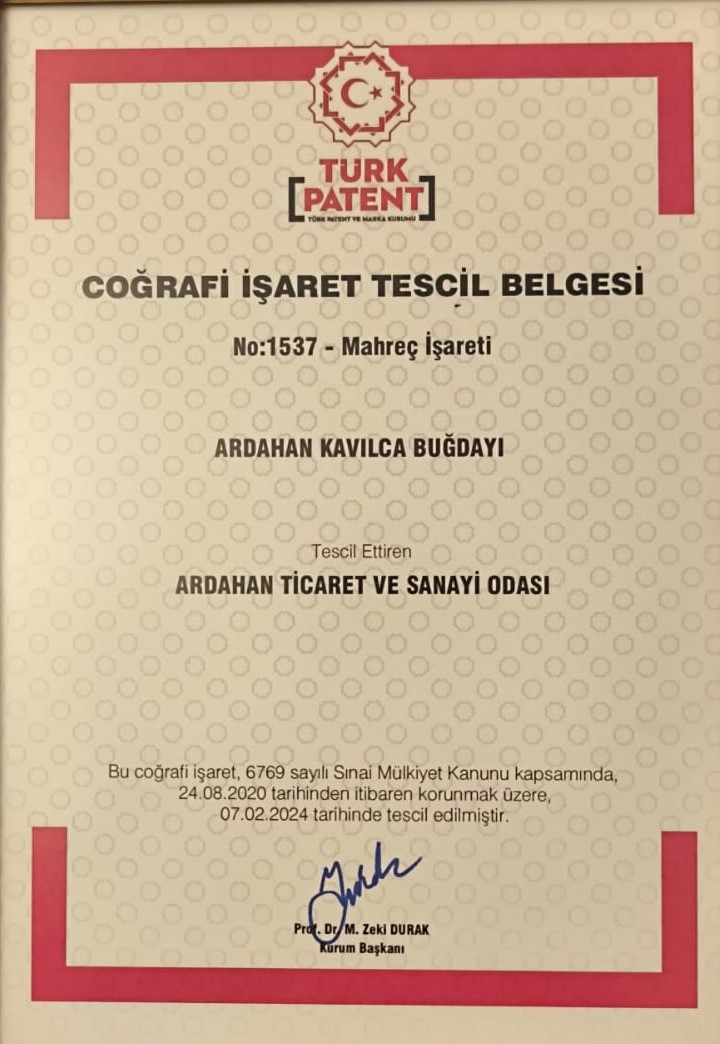 SERKA Teknik Destek Programı kapsamında desteklenen, Ardahan Ticaret ve Sanayi Odası'nın yararlanıcısı olduğu proje ile Ardahan kavılca buğdayı coğrafi işaret tescili aldı.
