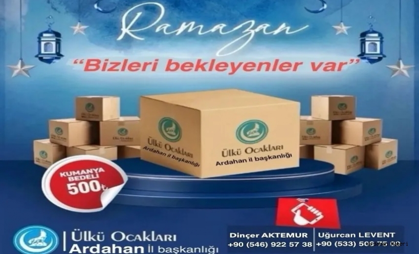 Ülkü Ocakları Ardahan İl Başkanı Mustafa Kay, Ramazan ayı nedeniyle ihtiyaç sahibi vatandaşlar için “Bizleri Bekleyenler Var” başlığı altında ramazan kolisi kampanyası başlattıklarını duyurdu. Ramazan kumanya paketi 500 TL olarak belirlendi.