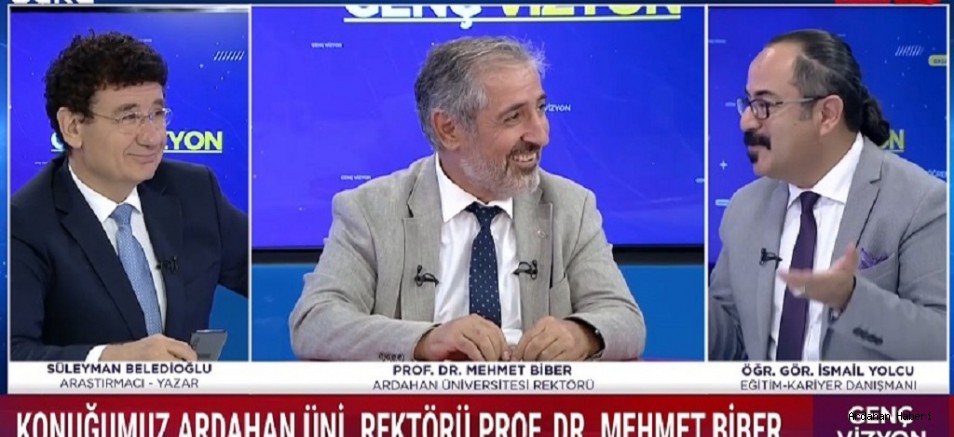 Ardahan Üniversitesi Rektörü Prof. Dr. Mehmet Biber, ÜLKE TV’de Eğitimci-Yazar Süleyman Beledioğlu ve İletişim Uzmanı İsmail Yolcu’nun sunumuyla gerçekleştirilen “Genç Vizyon” programına konuk oldu.