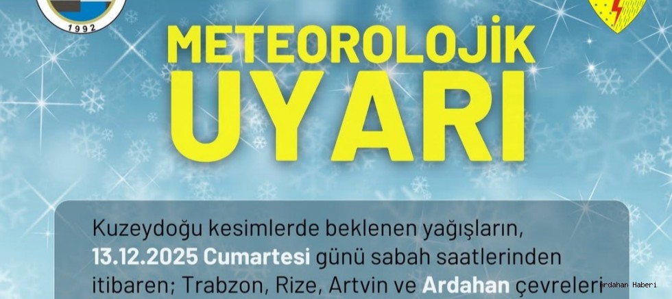 Meteoroloji Genel Müdürlüğü, Kuzeydoğu Anadolu için kuvvetli yağış uyarısında bulundu. Açıklamaya göre 13 Aralık 2025 Cumartesi günü sabah saatlerinden itibaren Trabzon, Rize, Artvin ve Ardahan çevreleri ile Giresun’un doğu kesimlerinde kuvvetli ve yer yer çok kuvvetli yağışların (20–75 kg/m²) etkili olması bekleniyor.