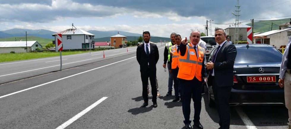 Ardahan Valisi Hayrettin Çiçek, Ardahan-Kars karayolunun Taşlıdere mevkiinde Karayolları 18. Bölge Müdürlüğü tarafından sürdürülen bitümlü sıcak karışım asfalt yol yapımı, yol iyileştirme ve istinat duvarları yapım çalışmalarını yerinde inceledi.