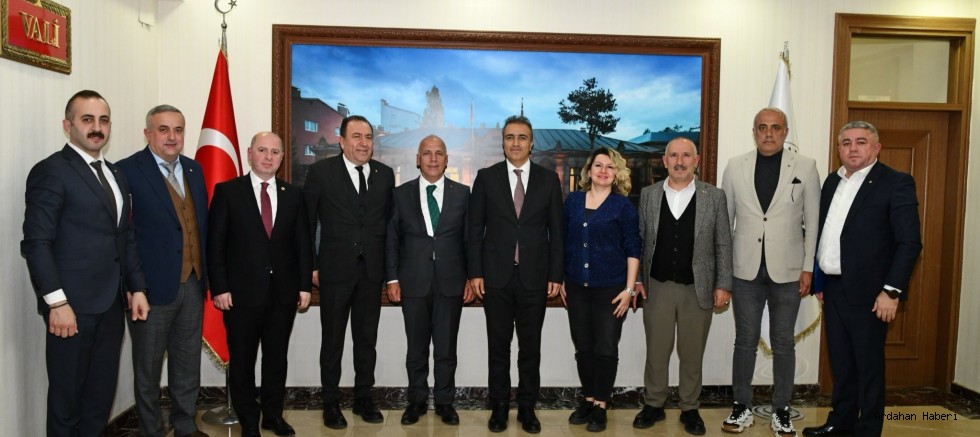 Ardahan Valisi Hayrettin Çiçek, Ardahan Ticaret ve Sanayi Odası Başkanı Çetin Demirci ile Artvin Ticaret Borsası Başkanı Osman Akyürek ve yönetim kurulu üyelerini makamında kabul etti