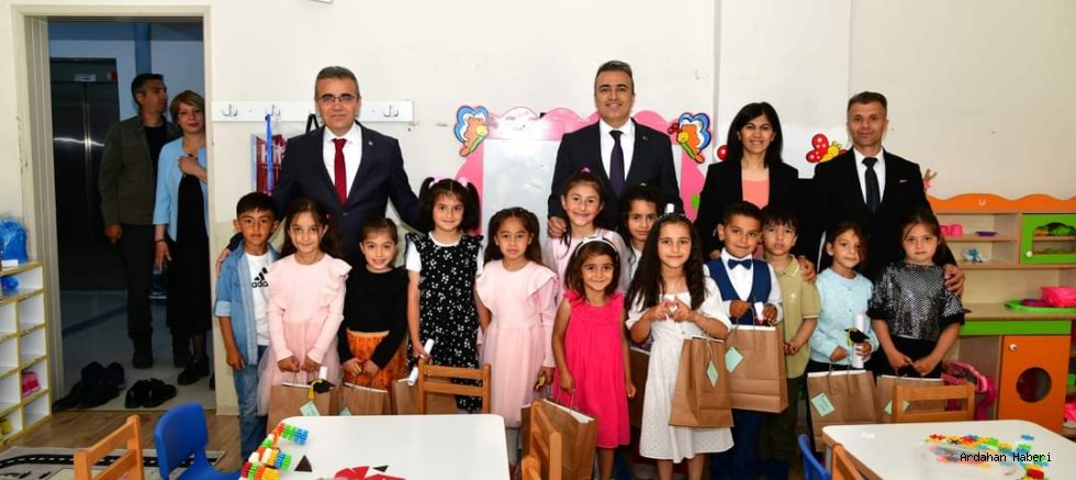Ardahan Valisi Hayrettin Çiçek, 2023-2024 eğitim-öğretim yılının sona ermesi dolayısıyla Şehit Burak Güneş İlkokulunda düzenlenen karne dağıtım programına katıldı.