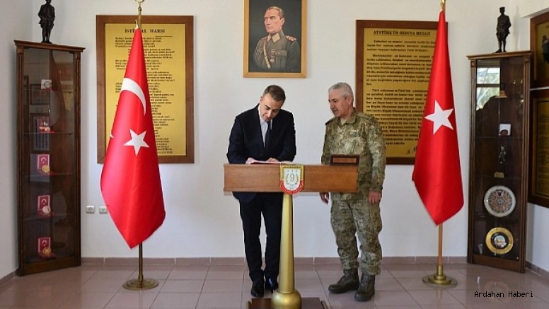 25. Hudut Tugay Komutanı Tuğgeneral Mehmet Cihanoğlu’nu ziyaret eden Vali Çiçek, Garnizon hatıra defterini imzaladı.