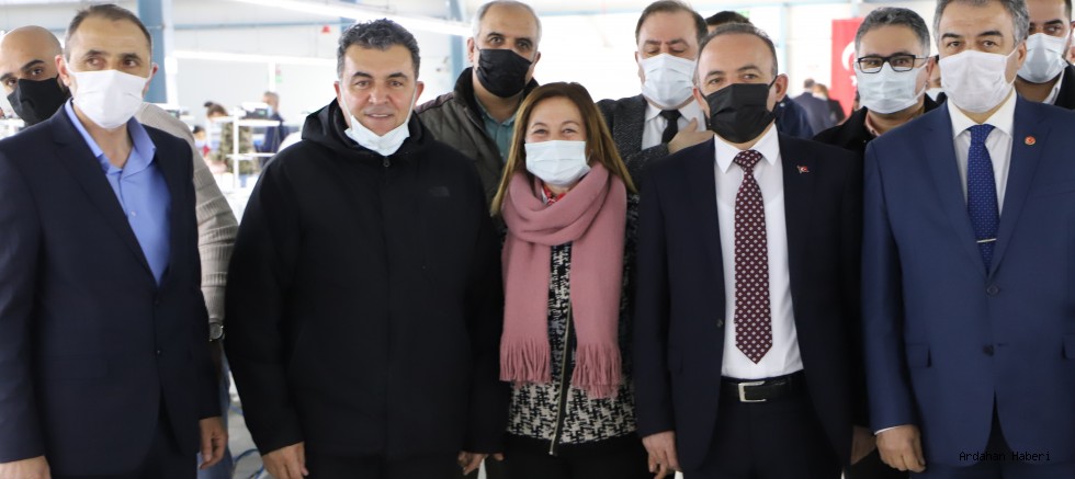 Ardahan Valisi Hüseyin Öner ve Belediye Başkanı Faruk Demir beraberlerindeki Ticaret ve Sanayi Odası Başkanı Çetin Demirci, İŞKUR İl Müdürü Ahmet Sonkaya, İl Milli Eğitim Müdürü Erhan Bulut, SGK İl Müdürü Fahri Toprak Vargün, KOSGEB Müdürü Ramazan Sivri ve AK Parti İl Başkanı Kaan Koç ile birlikte Sabri- Saniye Erdoğan Fabrikasında incelemelerde bulundu.