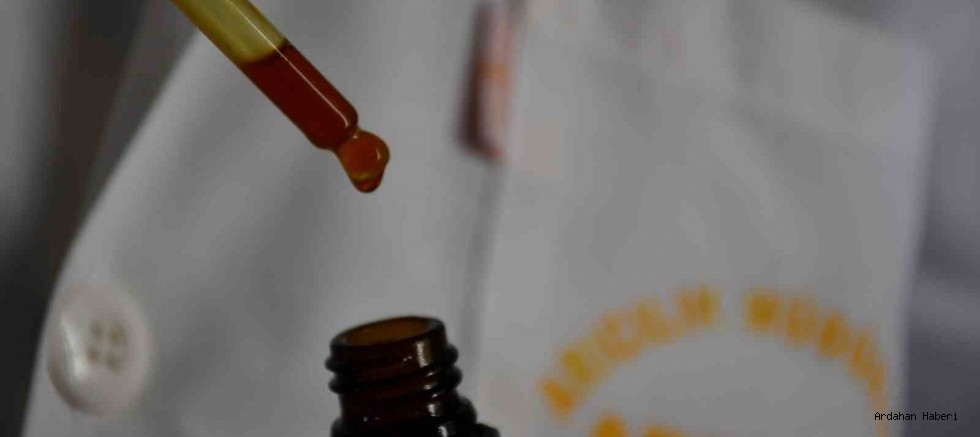 Kafkas Arısı Üretim, Eğitim ve Gen Merkezi Müdürlüğünde kurulan laboratuvarda Bal arılarının ürettiği propolis ayrıştırılıyor