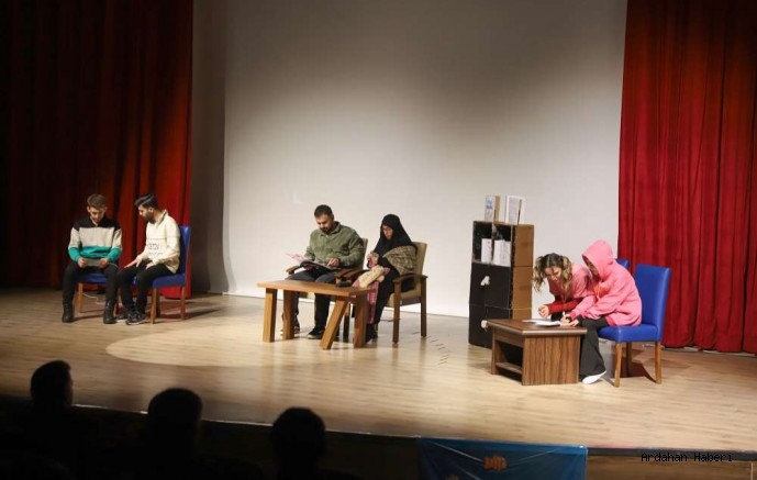Ardahan Üniversitesinde sahnelenen dört perdelik tiyatro oyununda; yangın, deprem, çığ ve sel gibi afetler, çocukların anlayabileceği eğitici ve öğretici bir dille ele alındı. Gösteri boyunca, afet anında doğru davranış biçimlerine dikkat çekilerek öğrencilerin bilinçlenmesi hedeflendi.