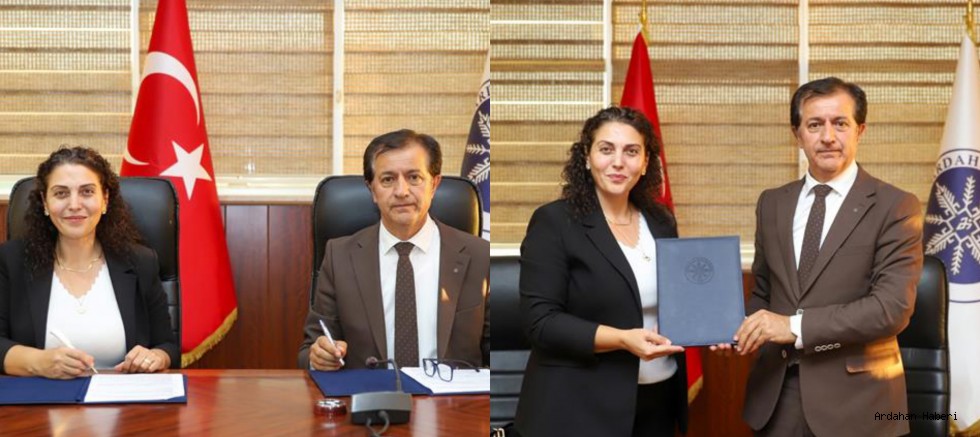Protokol, Rektör Prof. Dr. Öztürk Emiroğlu ile Türkiye İş Bankası Ardahan Şube Müdürü Dilek Mangal tarafından imzalandı.