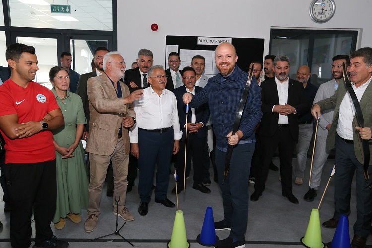 Protokol ile birlikte tesisleri gezen Dünya Etnospor Konfederasyonu Başkanı Bilal Erdoğan, ok atmayı da ihmal etmedi.