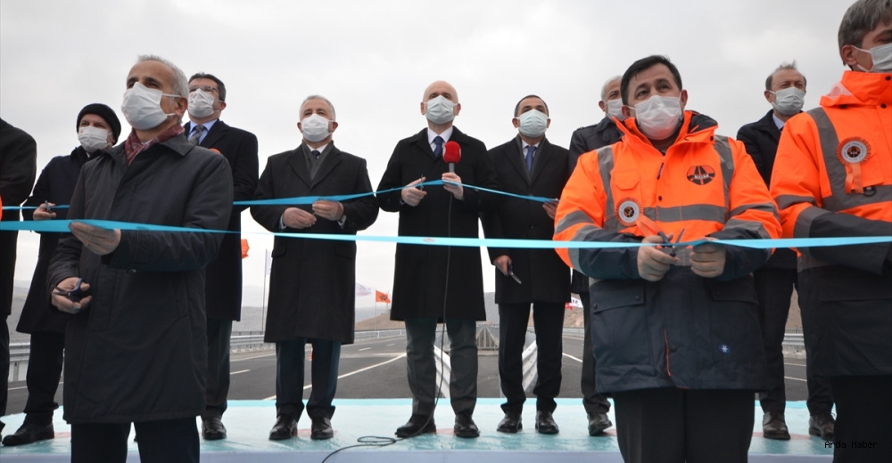 "Sınır kapıları güzergahında yer alan ve komşu ülkelerle yapılan ticaret hacminin büyük bir kısmını karşılayan bölgede, bölünmüş yollarla kesintisiz ulaşım sağlanmış oldu. Kara yollarında olduğu kadar Kars ve Erzurum'un demir yolu ulaşımının gelişmesi için de birçok yatırım yaptık. Bakü-Tiflis-Kars Demiryolu hattını hizmete açarak Çin'i Londra'ya bağlayan en kısa ticaret koridorunu oluşturduk. Kars ve Erzurum Lojistik merkezlerinin inşasını tamamlayarak hizmete açacağız. Önceki dönem ulaştırma bakanlarımızdan Sayın Ahmet Arslan'a, projede emeği geçen Bakanlığımız personeli ve yüklenici firma çalışanlarına teşekkür ediyorum."