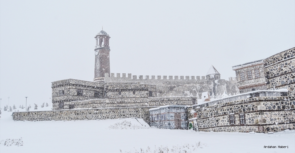 Tarihi kale ve Çifte Minareli Medrese gibi kadim şehrin beyaza bürünen eşsiz yapıları görsel şölen oluşturdu.