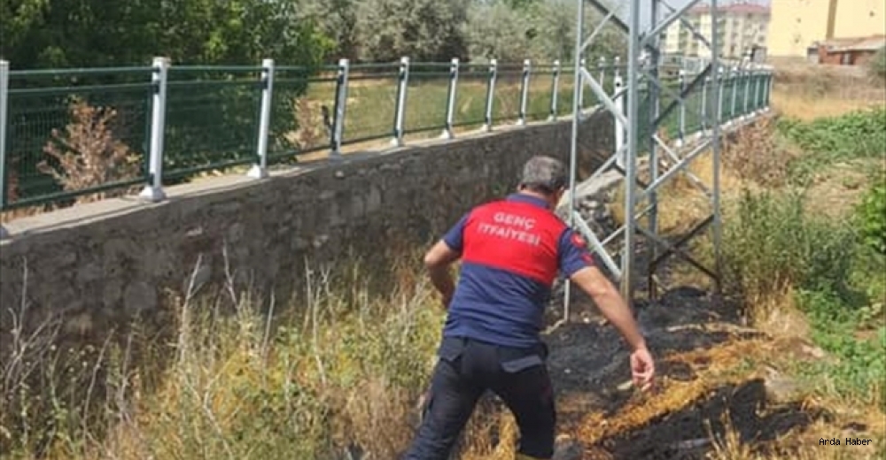 Genç Belediyesi İtfaiye Müdürlüğünden yapılan açıklamaya göre, Yenişehir Mahallesi 331. Sokak'ta elektrik direğinde leyleğin akıma kapılmasının ardından çıkan kıvılcımlar otluk alanda yangına neden oldu.