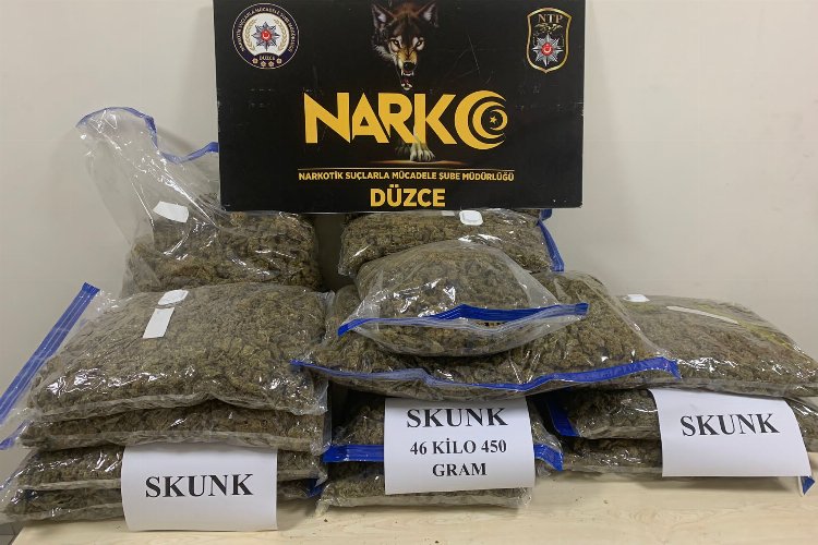 Anadolu Otoyolu'nun Düzce kesiminde durdurulan bir otomobilde 46 kilo 450 gram uyuşturucu madde ele geçirildi, araçtaki 3 kişi gözaltına alındı.