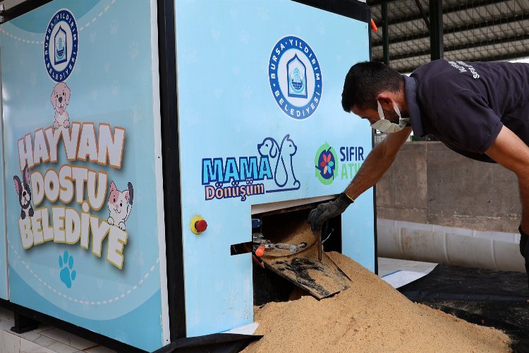 Yıldırım Belediyesi Sıfır Atık ve İklim Değişikliği Müdürlüğü’nde kurulan Mama Üretim Tesisi ile haftalık toplanan 2 ton yemek atığı kedi ve köpeklerin yiyeceği hazır mamaya dönüşüyor.