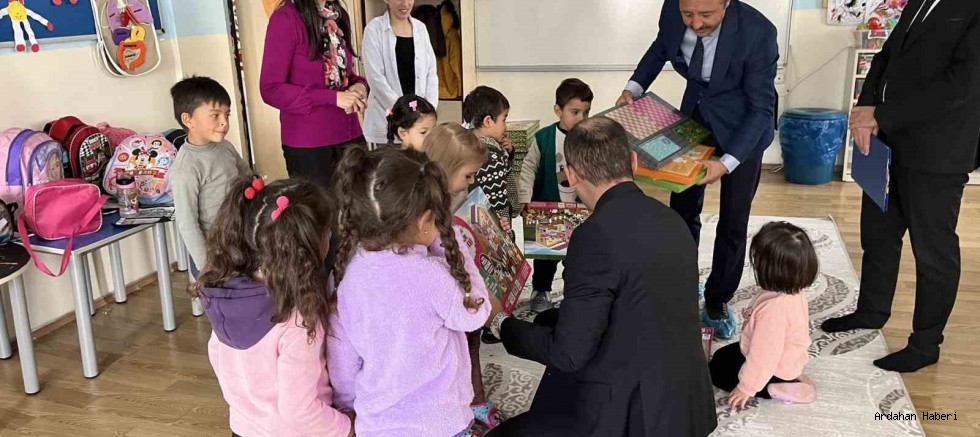 Çıldır Kaymakamı Muhamet Enes İpek’in girişimleriyle Cumhuriyetin 100. yılı münasebetiyle Ana sınıfı öğrencilerine oyun grupları hediye etti.