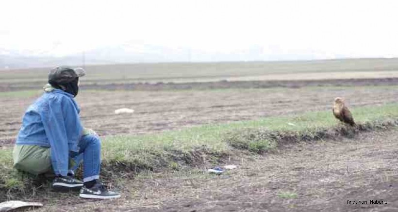 Ardahan'ın Çıldır ilçesine bağlı Aşıkşenlik Mahallesi'nde bulunan arazide rastladığı kızıl şahine yaklaşan doğal kuş gözlemcisi Fatma Şeyma Yanar, hayatındaki en önemli anlardan birini yaşadığını söyledi. Yanar, "Kuş gözlemcisi olarak buradayım. Arkamda görmüş olduğunuz bir kızıl şahin türü. Ortalama 25 yıl yaşam ömürleri var. 2 ile 4 arası yavrularının olduğunu biliyorum. Bunun dışında burada yolun kenarında kızıl şahini görmek gerçekten çok heyecan verici. Bu kadar yakından görmek nasip oldu. Dinlenmek için veya fare ve köstebek avlanmak için burada olabilir" dedi.