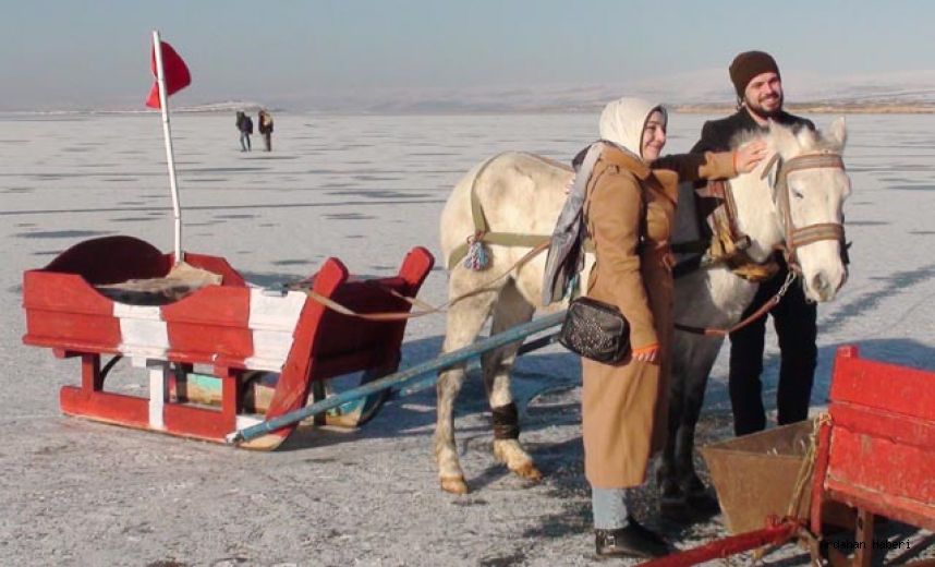 Deniz seviyesinden 1950 metre yükseklikteki 123 kilometrelik alana sahip Çıldır Gölü'nün buz tutan kıyı kesiminde atlı kızaklarla yapılan tur, büyük ilgi görüyor. Taşbaşı köyünde faaliyetlerini sürdüren atlı kızakçılardan Ertan Taşdemir, yerli ve yabancı turistleri geçen sezon olduğu gibi bu kış da 10 dakikası 25 liradan gezdireceklerini söyledi. Gölün şimdilik yüzde 30'luk bölümünün donduğunu belirten Taşdemir, "Mevsimin ilk atlı kızak sezonunun açtık. Bu yıl zam yapmayıp müşterileri geçen yılki fiyatla gezdireceğiz" dedi.