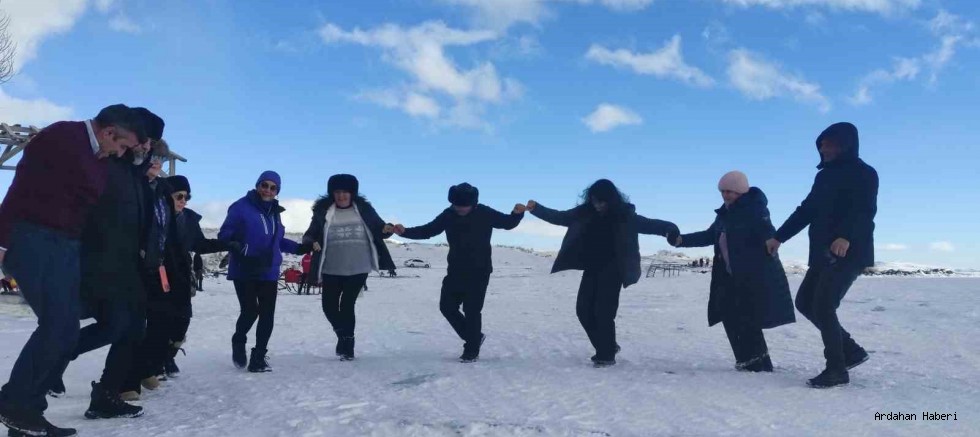 Kış turizminin gözde merkezlerinden biri olan Çıldır Gölü’ne gelen ziyaretçiler, kar ve buzla kaplı yüzeyde halay çekerek renkli görüntüler oluşturdu. Özenle süslenen atlı kızaklarla göl üzerinde gezinti yapan turistler, türküler eşliğinde eğlenerek unutulmaz anlar yaşadı. Bazı ziyaretçiler ise buz kütlesi üzerinde yürüyüş yaparak eşsiz manzaranın tadını çıkardı.