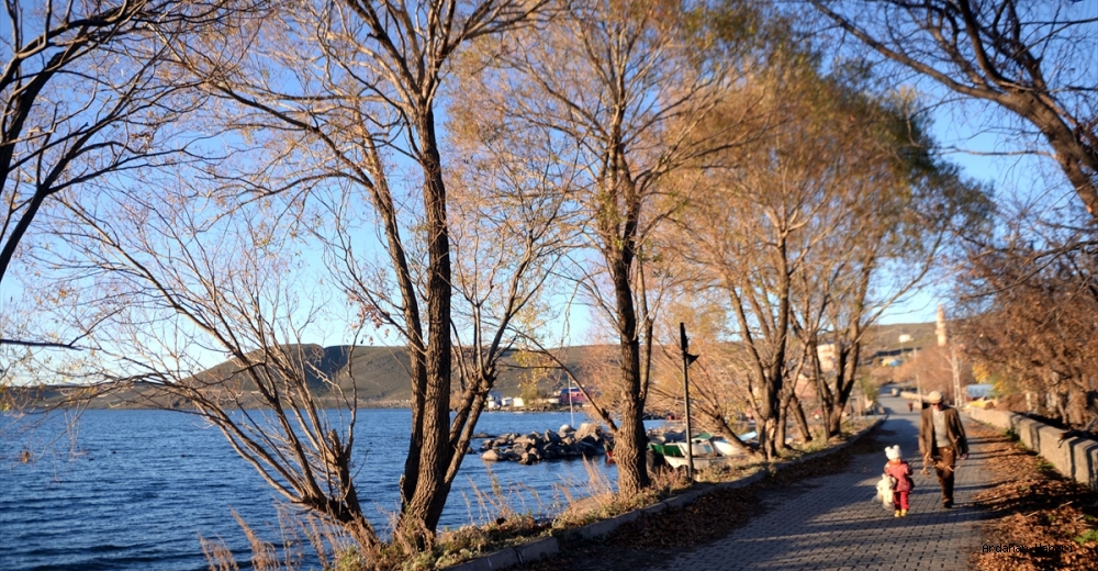 Son günlerde sonbahar renklerinin hakim olduğu Çıldır Gölü'nde, sararan ağaç ve yapraklar güzel manzaralar oluşturdu.