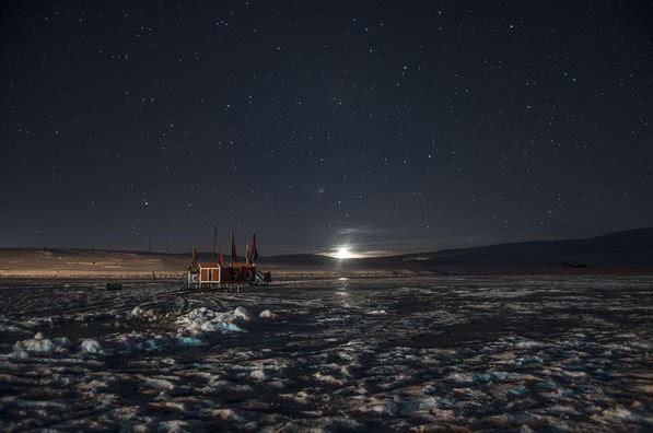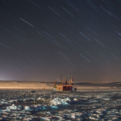 Bölgeyi gece ziyaret eden fotoğraf sanatçıları, gece karanlığında buz üzerine çıkarak, uzun pozlama tekniğiyle birbirinden güzel kareler elde etti.