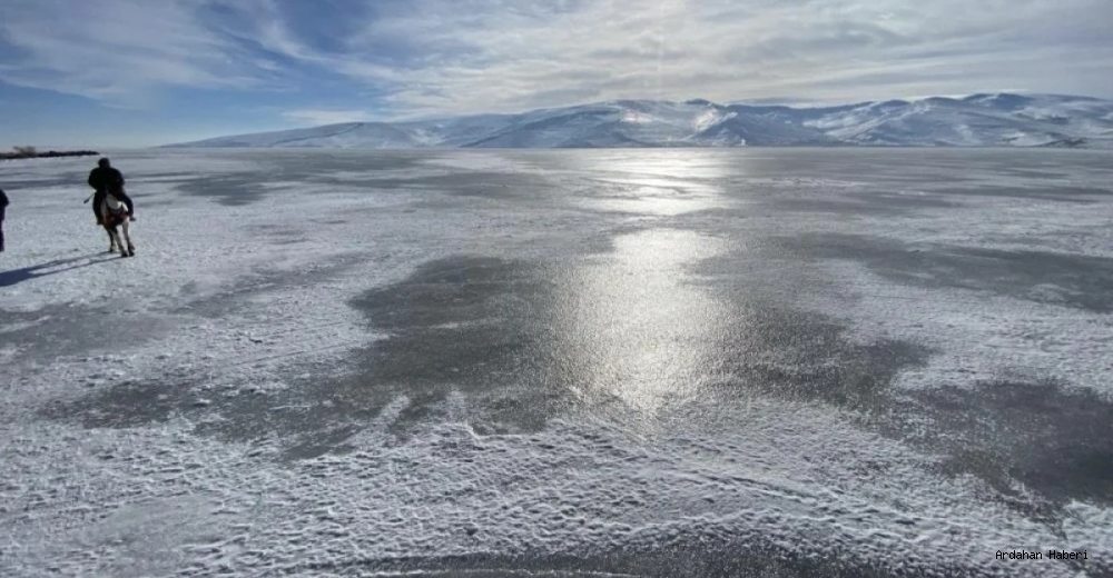 Kar yağışının ardından, hava sıcaklığının sıfırın altında 10 dereceye kadar düşmesi nedeniyle Çıldır Gölü'nün yüzeyi buz tutmaya başladı.