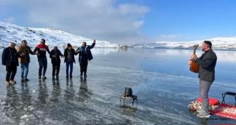 Çıldır Gölü kenarında bulunan köylerde yaşayan ve gölün buz tutmasını heyecanla bekleyen bölge halkı da göl buz tutar tutmaz üzerinde sazlı sözlü türküler söyledi, halay çekerek, unutulmaya yüz tutan aşık oyununu oynadı.