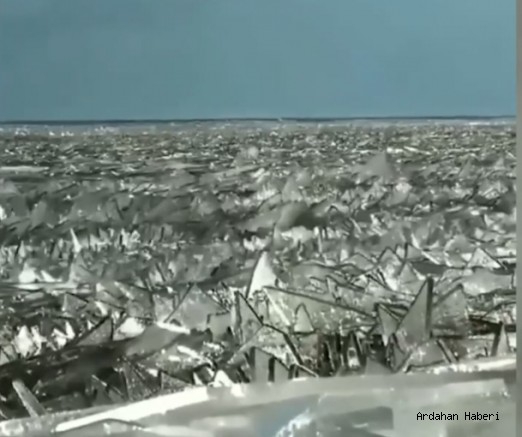 Çıldır Gölü'nün görüntüleri sosyal medyada yine gündem oldu. Donan buz parçalarının oluşturduğu manzara kameraya yansıdı.