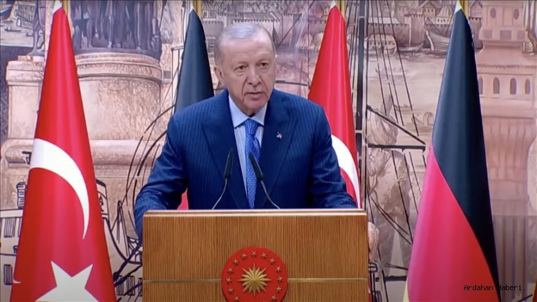 Erdoğan, Cumhurbaşkanlığı Dolmabahçe Ofisi'nde Almanya Başbakanı Olaf Scholz ile düzenlediği ortak basın toplantısında, ülkeler arasındaki dostluk anlaşmasının 100. yıl dönümünü kutladıklarını dile getirdi.