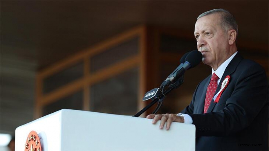Dünyadaki güç dengelerinin yeni gerilimleri ve muhtemel çatışmaları artırdığı bir dönemde her sınıftan ve rütbeden askeri personelin orduları için kritik öneme sahip olduğunu vurgulayan Erdoğan, "Milletimizin göz bebeği ordumuz bölgesel tehditler ve terör örgütleri yanında, bünyesine sızmaya çalışan sinsi yapıların yol açtığı tahribatlarla da mücadele etmek mecburiyetinde kalmıştır. Her dönemde farklı kisvelerle karşımıza çıkan bu yapıların en son ve alçak örneği FETÖ idi. Türk Silahlı Kuvvetleri'miz milletimizin destansı direnişle başarısızlığa uğrayan 15 Temmuz darbe girişimi ardından bünyesinde ciddi bir temizlik yapmıştır. Bu büyük temizliğin ardından ordumuzun bittiğini, kolay kolay ayağa kalkamayacağını, hele hele dünyaya parmak ısırtacak harekatlar yapamayacaklarını düşünenlerin yanıldıklarını özellikle görmeleri sadece birkaç hafta sürdü. Darbe girişiminden sadece 40 gün sonra başlattığımız Fırat Kalkanı Harekatı'yla bölgemizdeki insani krizin en önemli aktörü haline dönüştürülen DEAŞ'a ilk büyük ve ciddi darbeyi biz vurduk. Ardından Zeytin Dalı, Barış Pınarı ve Bahar Kalkanı Harekatlarıyla Türk Silahlı Kuvvetleri'nin ülkemizin çıkarlarını koruma ve bölgesindeki huzuru sağlama konusundaki gücünü tüm dünyaya gösterdik. Bu başarının gerisinde, ordumuzun personel temin ve eğitim sistemini yeniden yapılandırarak FETÖ'cülerin tasviyesinden doğan boşluğu hızla doldurmamız vardır" dedi.