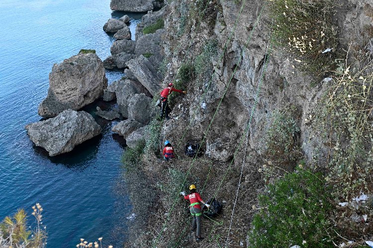 Antalya’da Muratpaşa Belediyesi, Dünya Temizlik Günü’nde kentin doğa harikası falez sahil bandında, 10 kişilik dağcı ekibiyle temizlik yaptı.